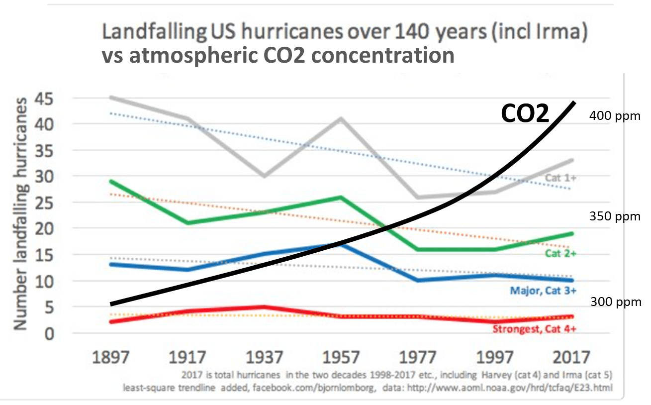 If climate and hurricanes are indeed related to CO2, as alarmist and activist scientists like to insist, then the data are telling us to emit more and not less. Of course the CO2-hurricane activity relationship is silly.