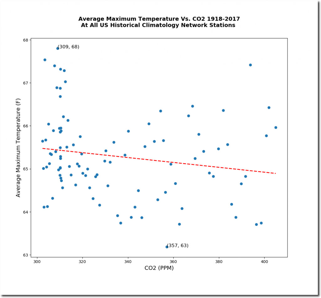 The average maximum temperature has also plummeted as CO2 has increased.