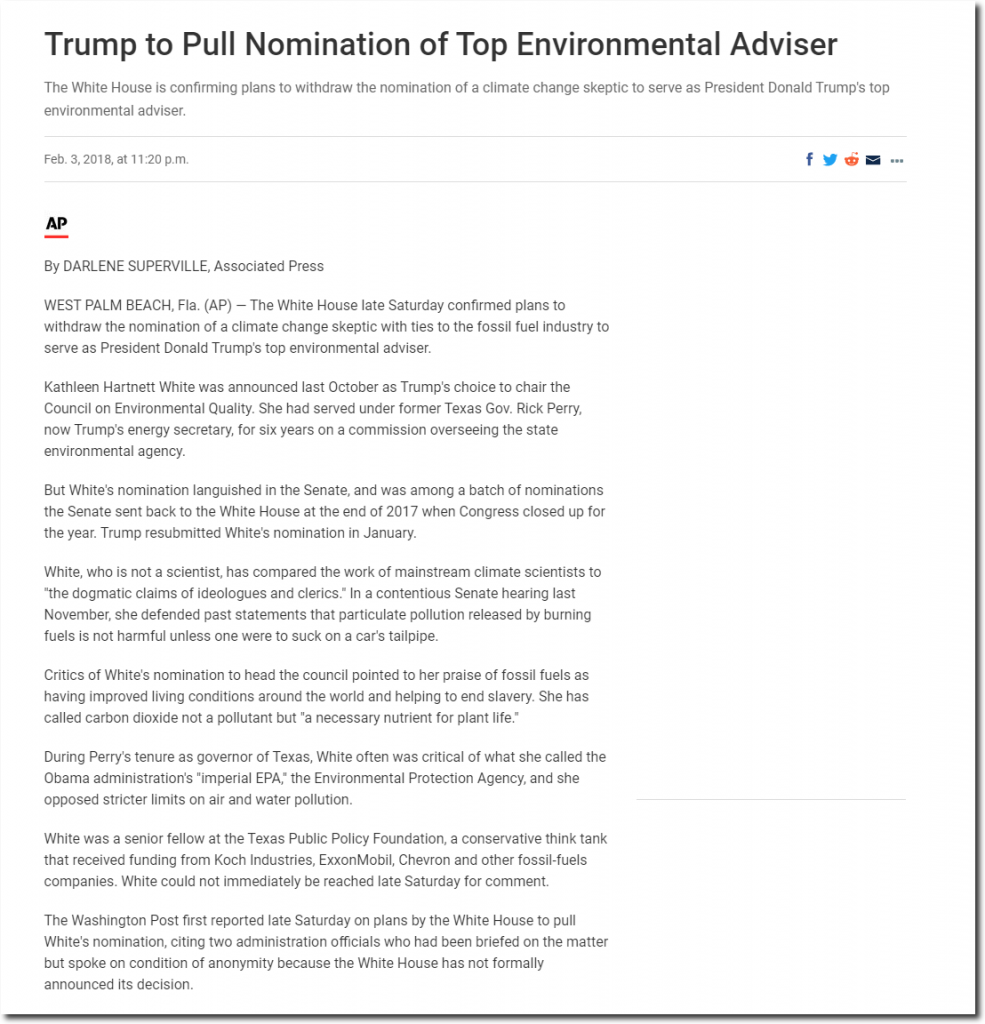 Last February I moderated a panel at CPAC which included President Trump’s (future) pick for head of the Environmental Quality Council. She was the perfect choice for the job, having a solid understanding of the global warming scam, and having headed up the second largest environmental regulatory agency in the world.