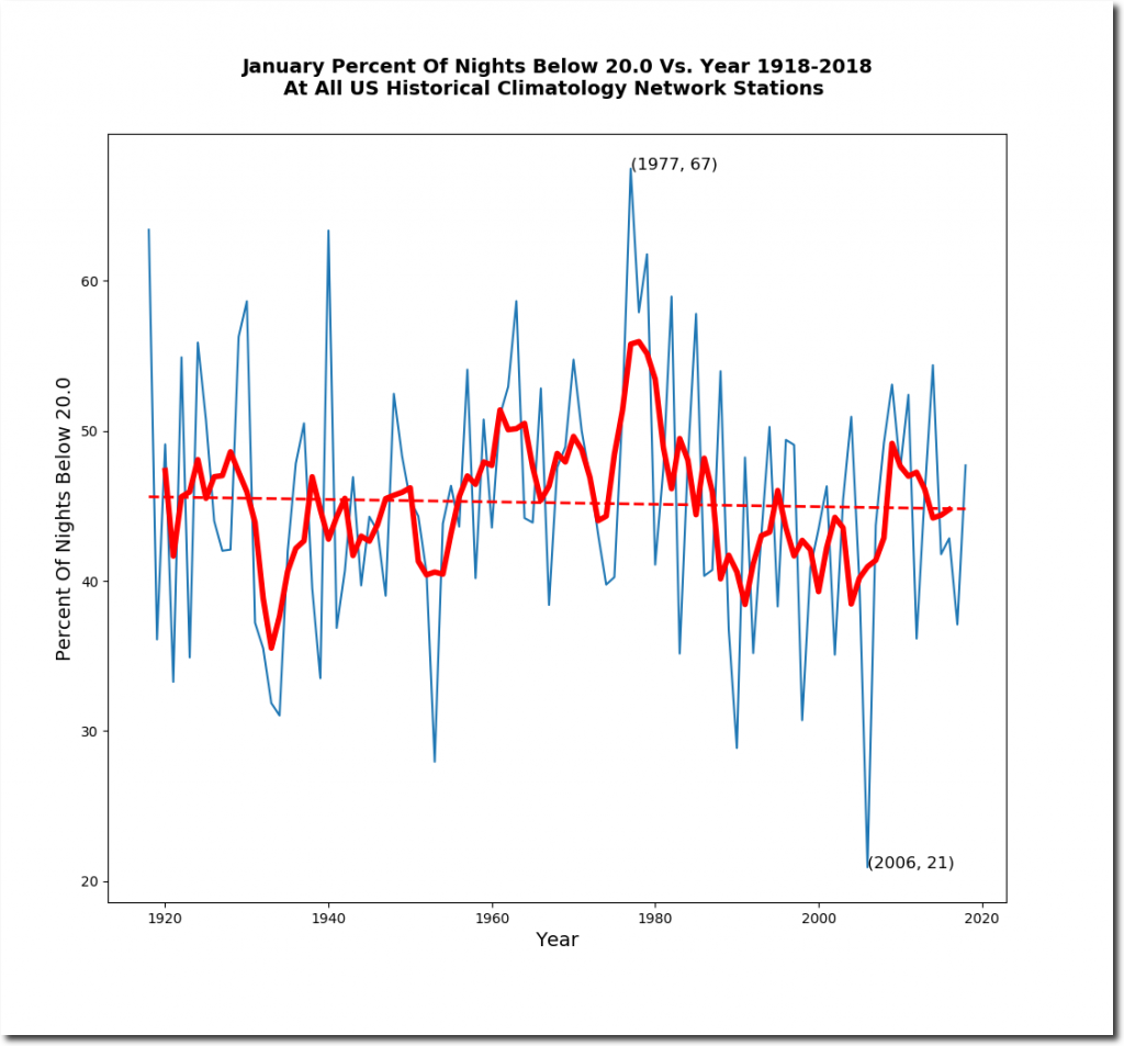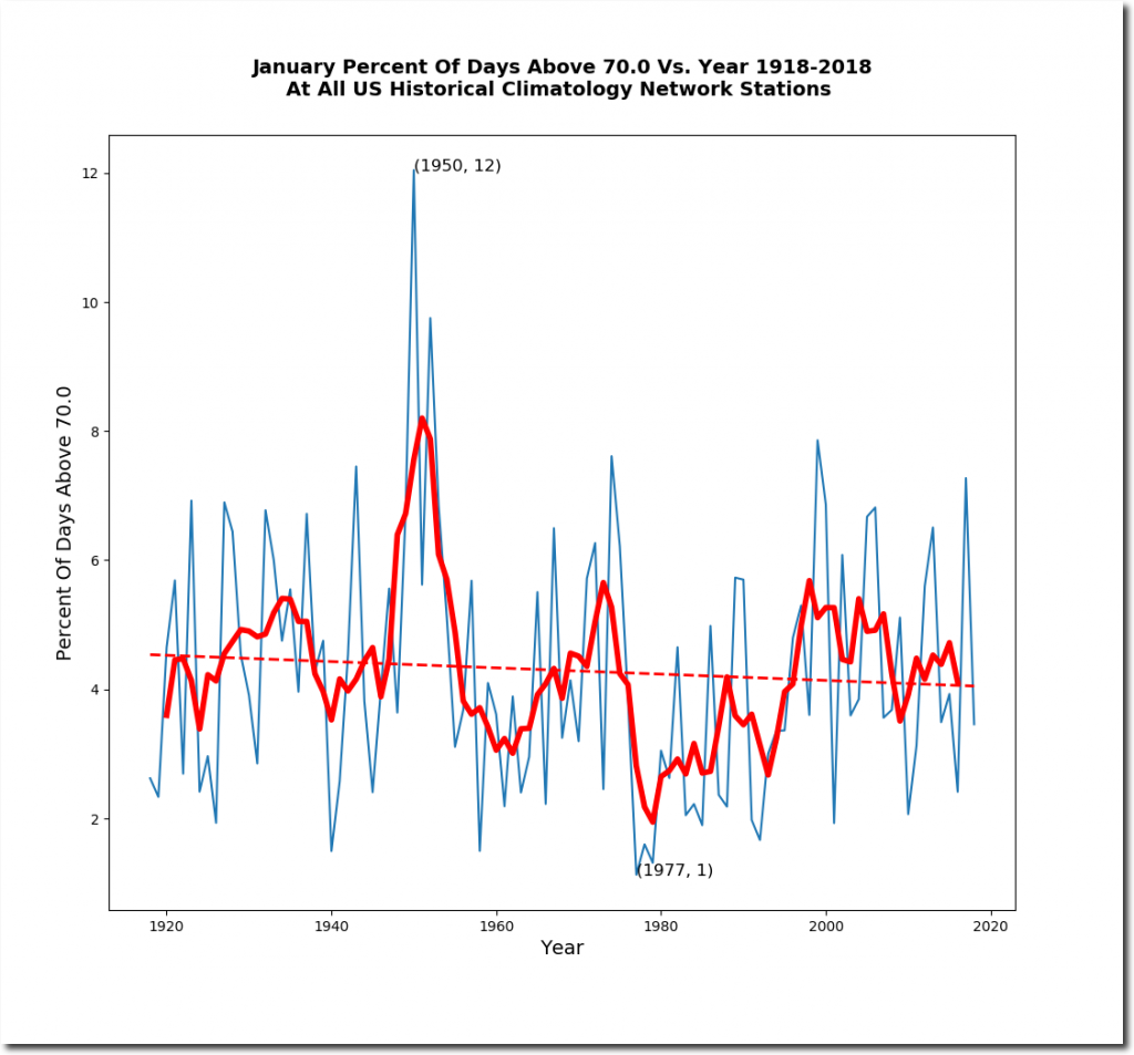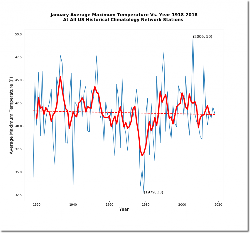There has been no trend in January afternoon temperatures across the US over the past century.