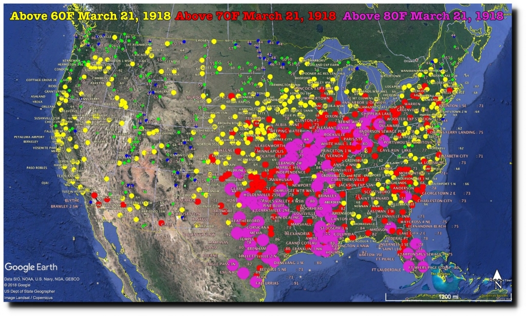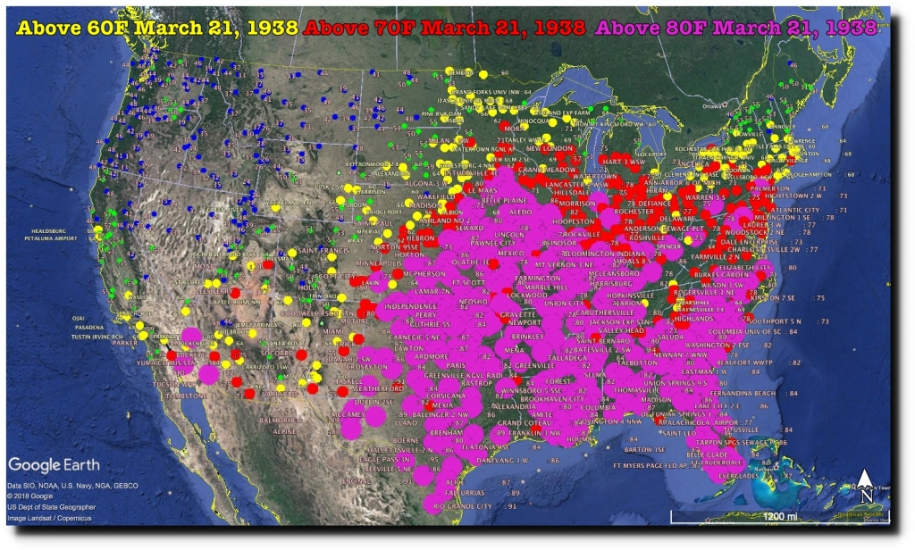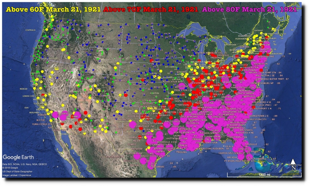 We are having a blizzard on the East Coast and same in the California mountains, but March 21 wasn’t always cold like this. March 21 temperatures were generally much warmer prior to the 1950’s.