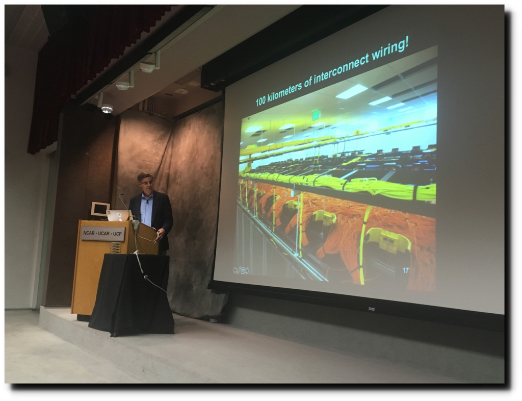 This slide showed the massive wiring interconnect at NCAR’s Cheyenne computing facility.