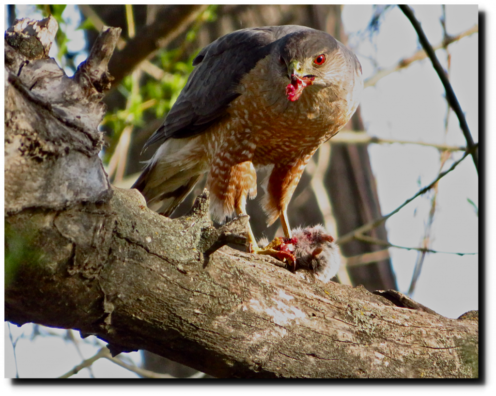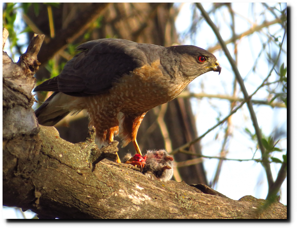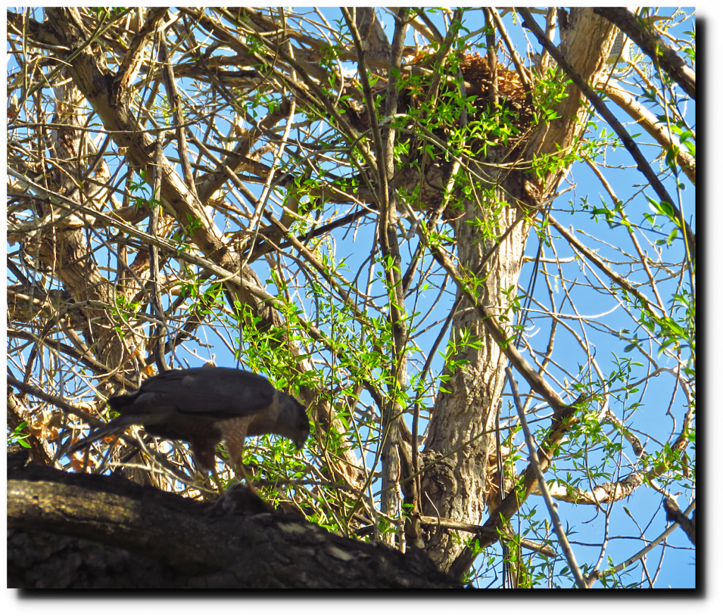 They are back at the nest. Not sure if this is one of last year’s chicks or one of the parents, but I met up with him at dinner time. The face looks very similar to the top baby picture above.