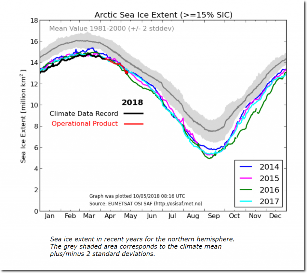 DMI shows Arctic sea ice extent falling sharply over the last few days, with almost 5% of the ice melted in just a few days.
