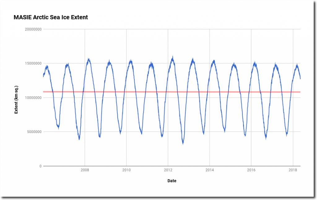 Despite all the endless hysterics from climate alarmists, there has been no change in Arctic sea ice extent since the start of MASIE records in 2006.
