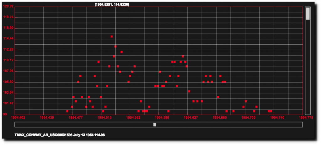During the summer of 1954, Conway, Arkansas had 72 days over 100 degrees, including 115 degrees on July 13.