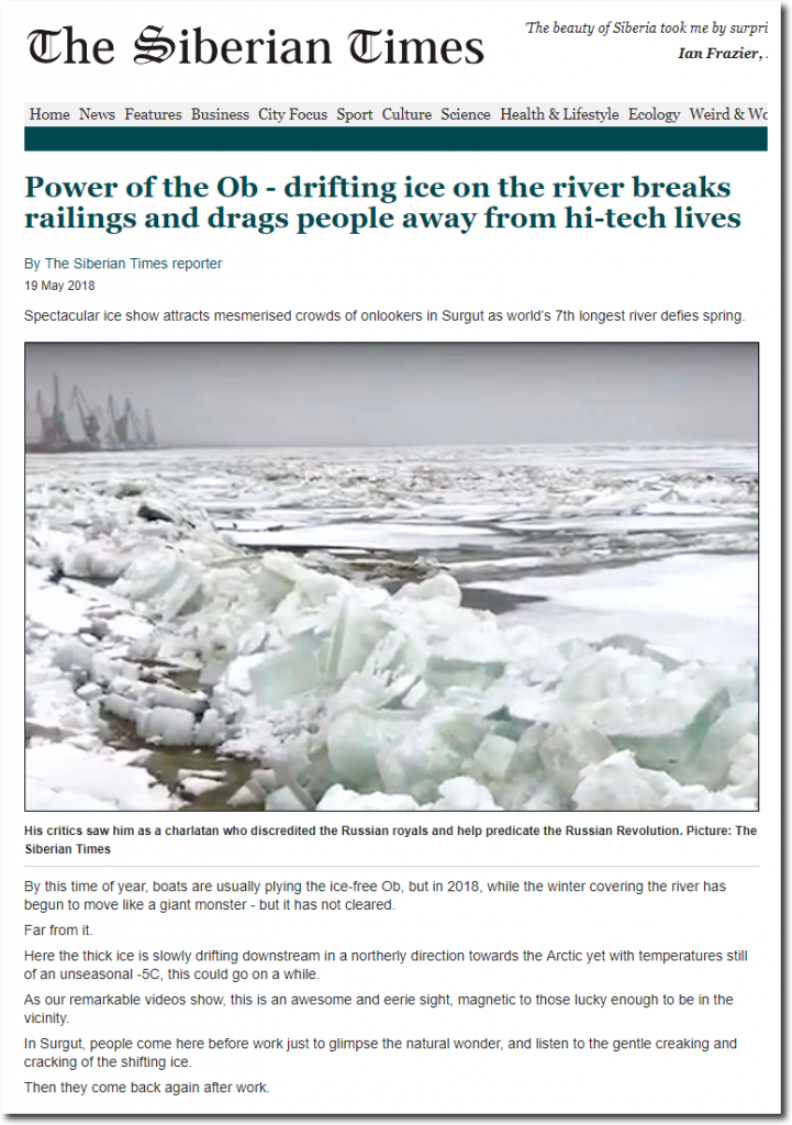 Power of the Ob – drifting ice on the river breaks railings and drags people away from hi-tech lives