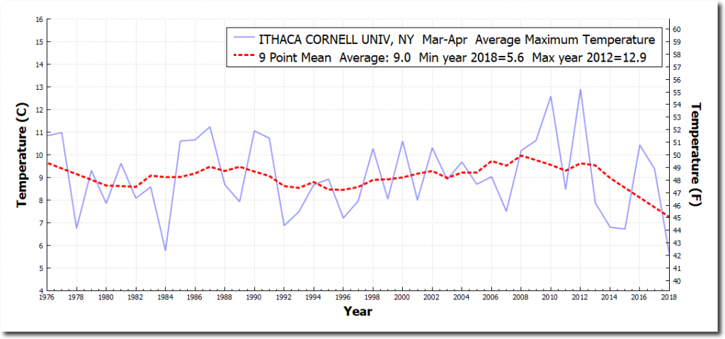Right after Climate Barbie bragged about a warm day in New York at the end of February, New York State had their coldest March/April in over 40 years.