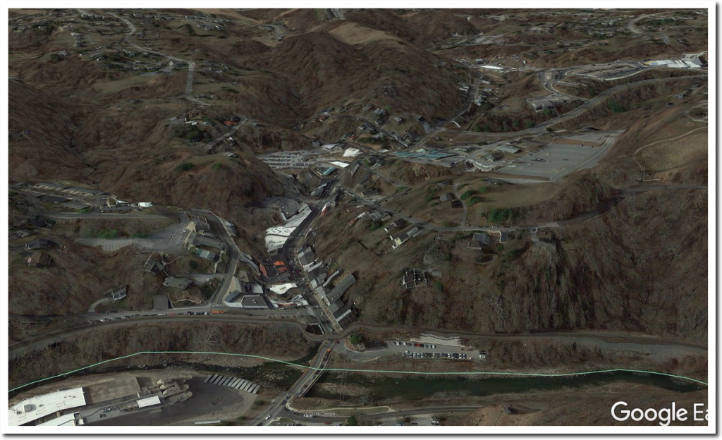 Downtown Ellicott City is located in the bottom of an intermittent river channel, with lots of asphalt perched overhead. When it rains, all the drainage off the parking lots comes directly downtown.