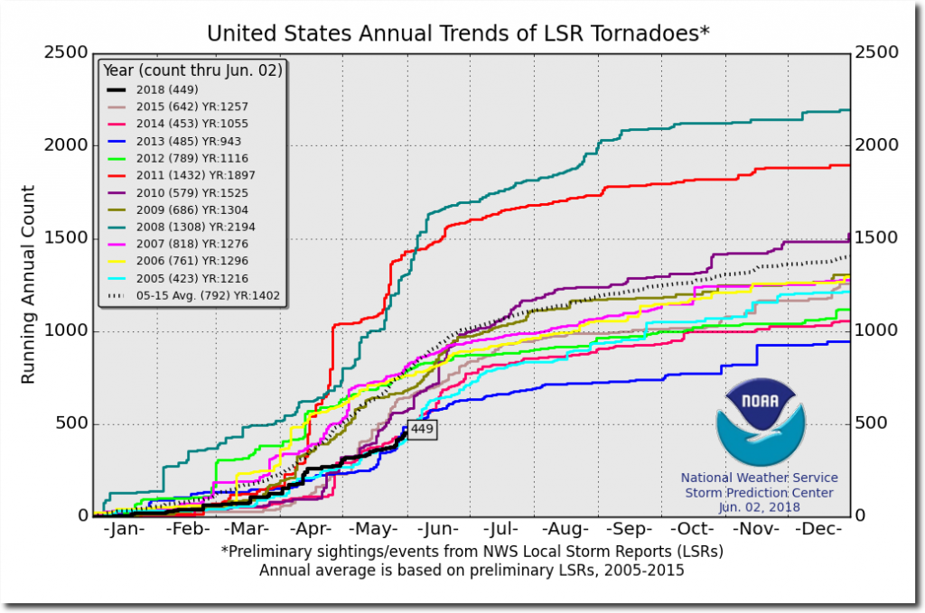 He would have a more difficult time now getting his career launched, because tornadoes are once again at a record low.