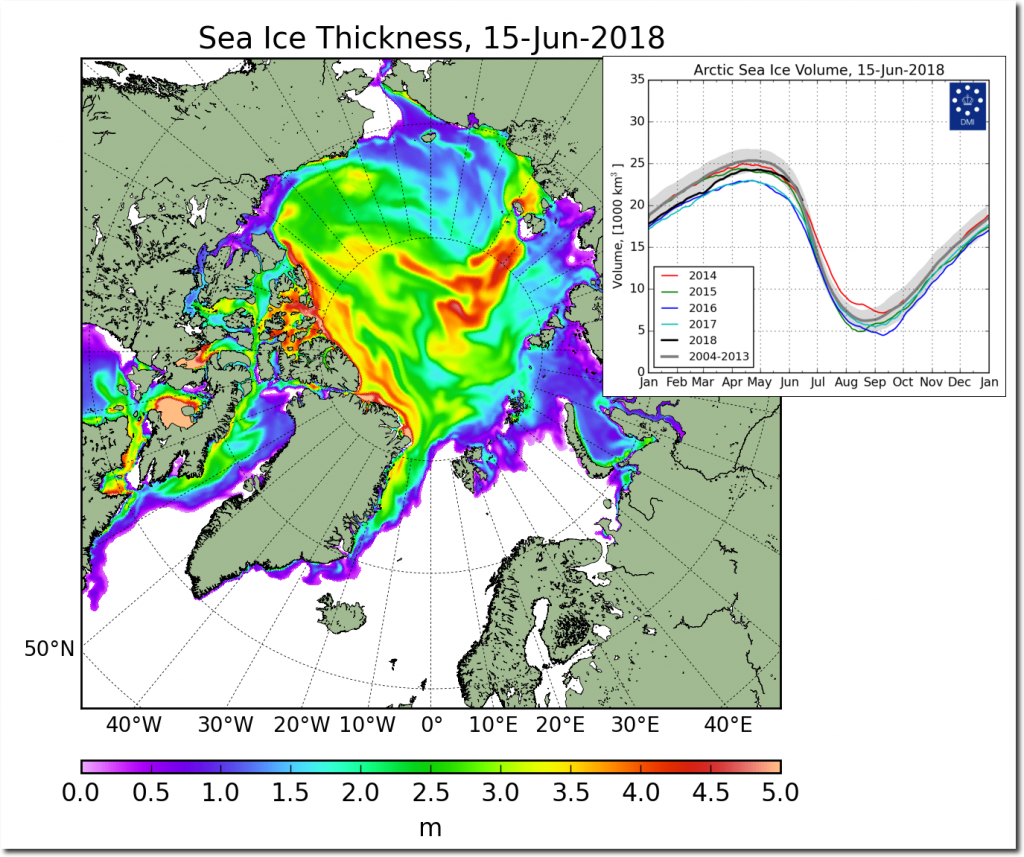 Arctic sea ice volume is highest in 13 years, and melting at the slowest rate on record. During most years after July 25 volume melt rates drop off sharply, so Arctic alarmists have about 40 days to wipe out 20 trillion tons of ice.