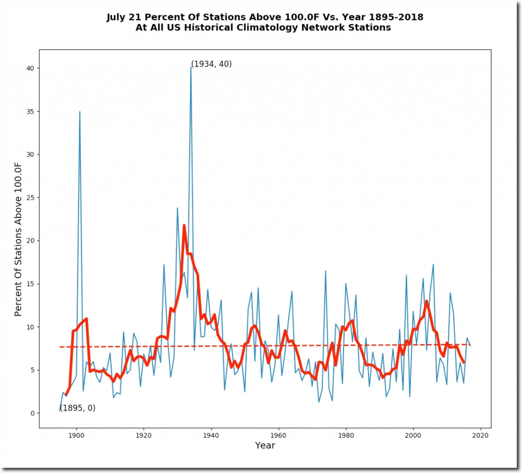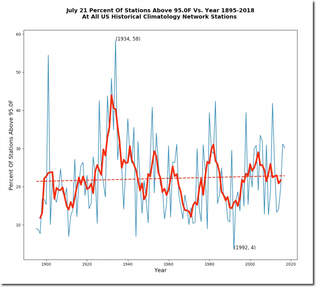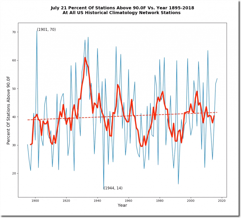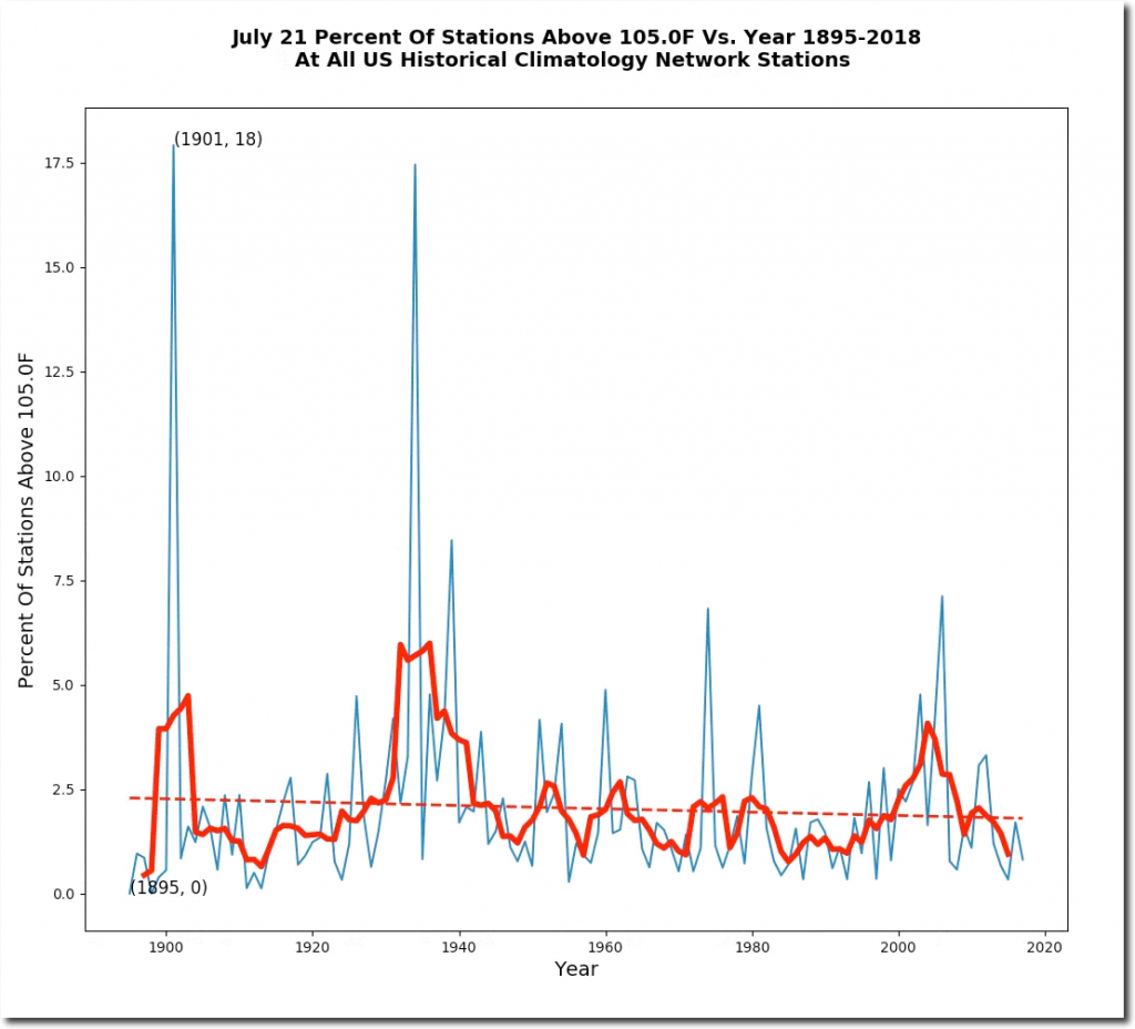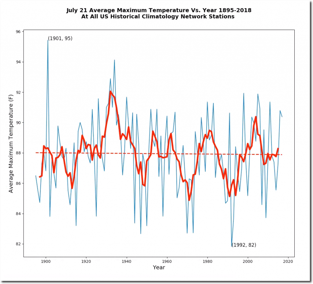 The US has had some very hot July 21st’s. July 21st, 1901 – the average afternoon temperature around the US was 95 degrees, and the Chicago area was 110 degrees.