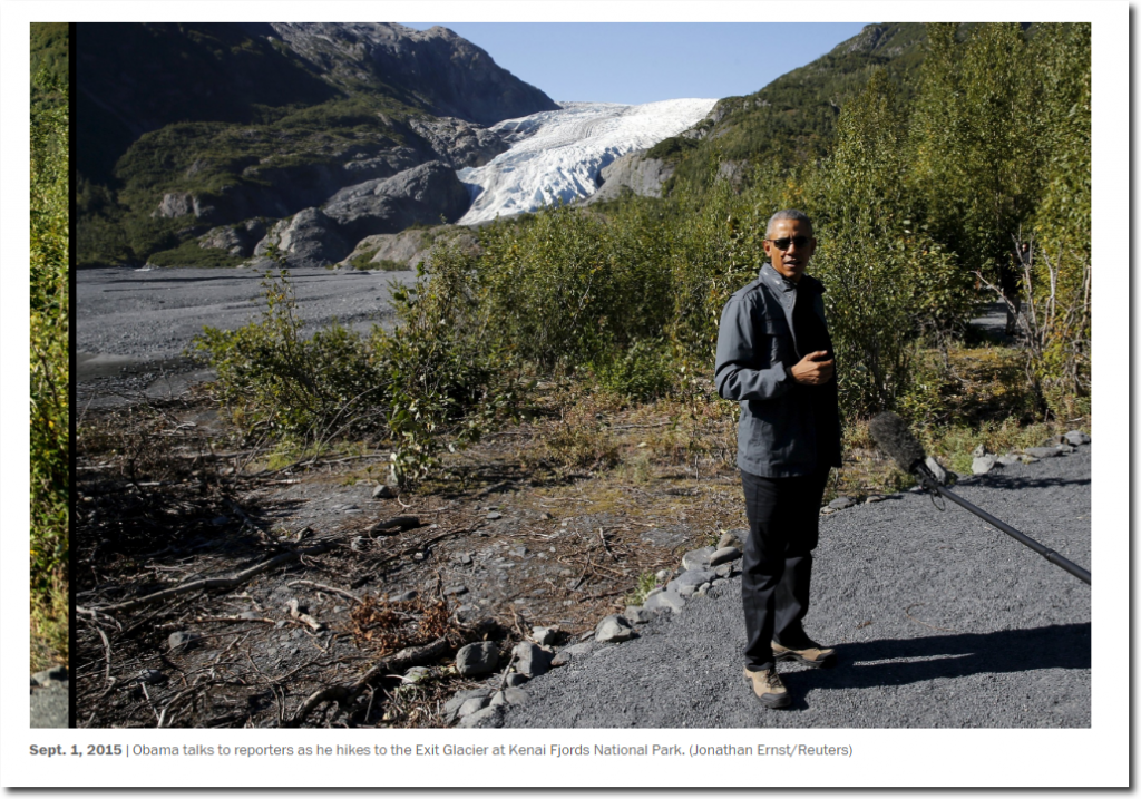 The Exit Glacier in Alaska has been retreating since the Little Ice Age. Barack Obama took a selfie in front of the glacier to highlight climate change.