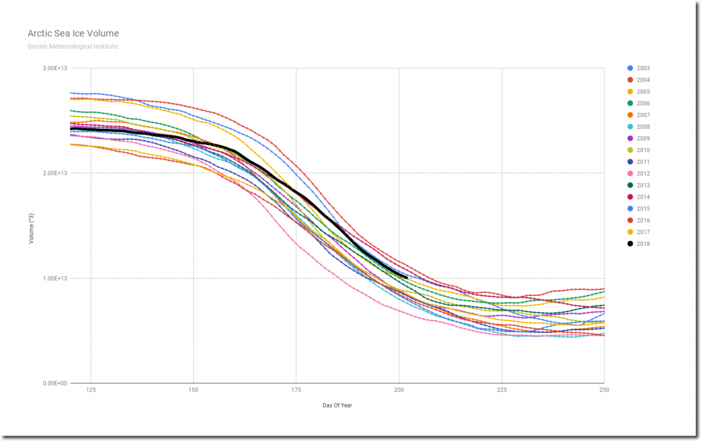 Arctic sea ice volume loss slowed again yesterday, so I am changing my ice-free Arctic forecast to September 21, at 4:59 pm.