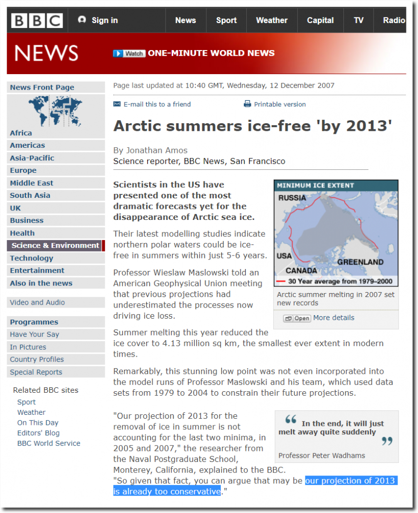 “our projection of (an ice-free Arctic in) 2013 is already too conservative.”