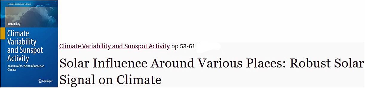 Publishing her work in a new peer-reviewed scientific textbook, Dr. Indrani Roy, a solar and climate scientist, has determined there is a “robust solar signal on climate” with observational results affirming the solar signature on sea surface temperature and annual mean air temperature.
