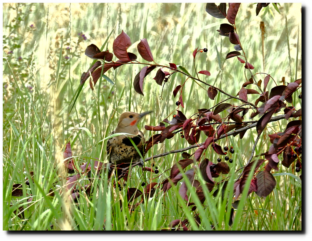 I haven’t seen the owl there recently, but my favorite spot in the wetlands is full of chokecherries and wild apples now.