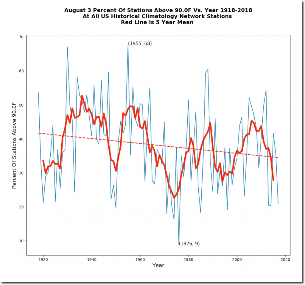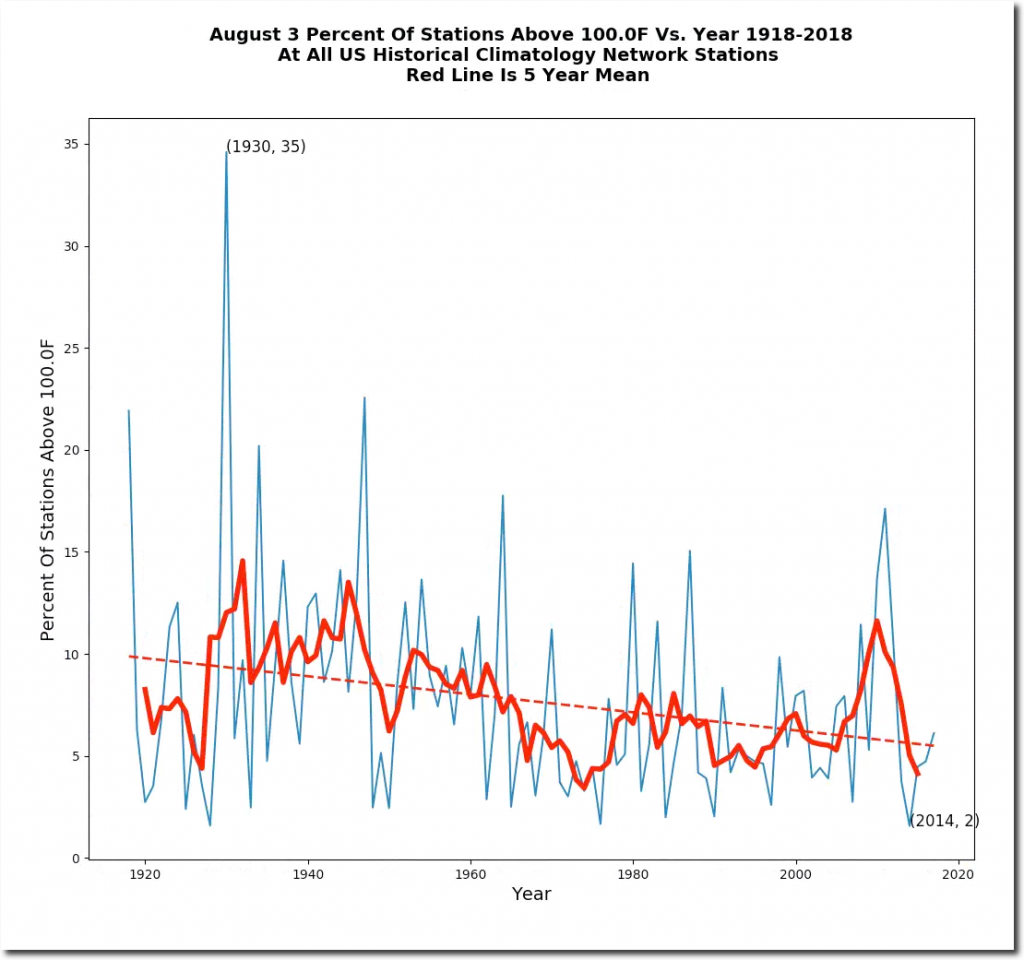 August 3 US afternoon temperatures peaked in 1930, and have been declining ever since.