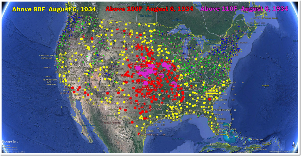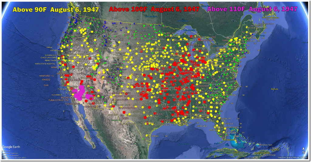 On August 6th, 1930 more than two-thirds of the US was over 90 degrees.