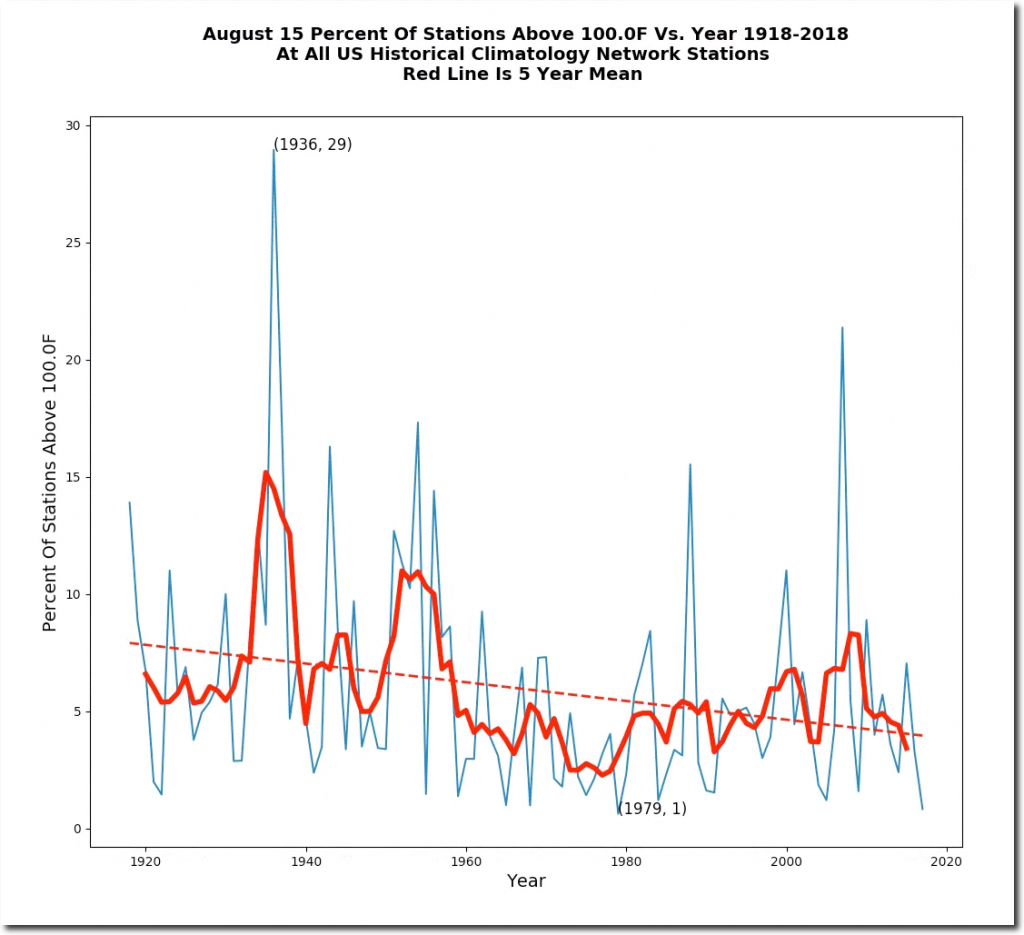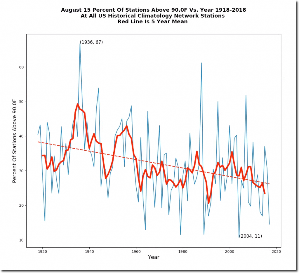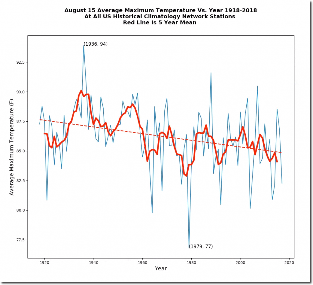 August 15 temperatures have plummeted in the US over the past century.