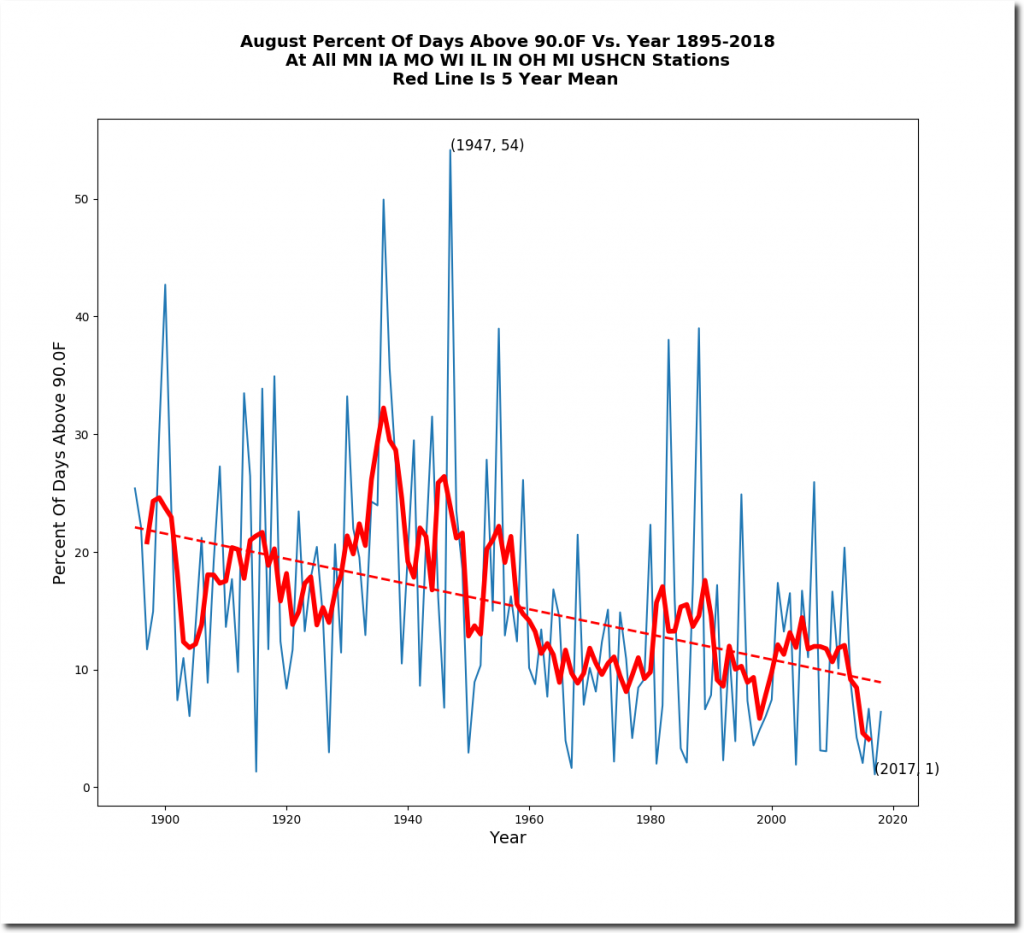 August afternoon temperatures have dropped sharply in the Midwest since the 19th century, as has the frequency of hot days.