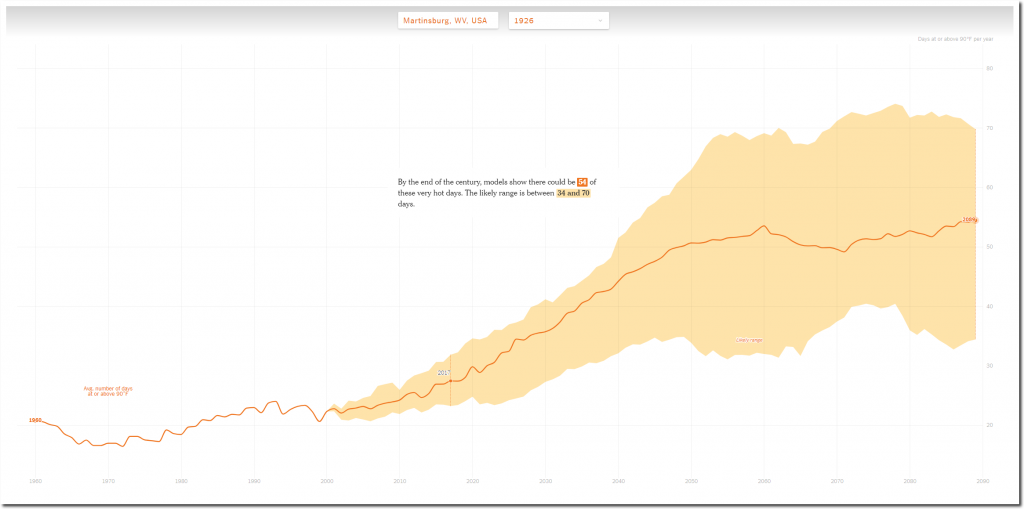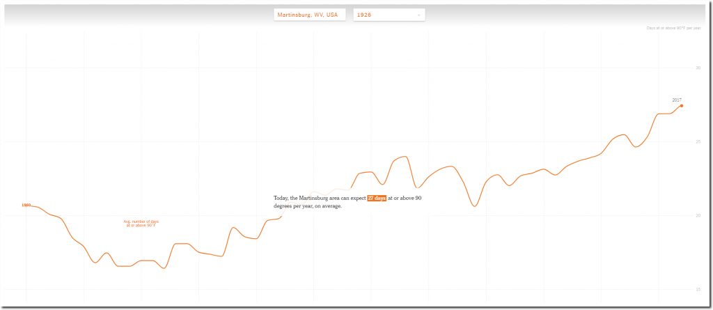The first place I tried it our was Martinsburg, West Virginia, which NOAA has data for back to 1926. I entered 1926 into the New York Times web page, and a disclaimer popped up saying they don’t have any data before the 1960’s.