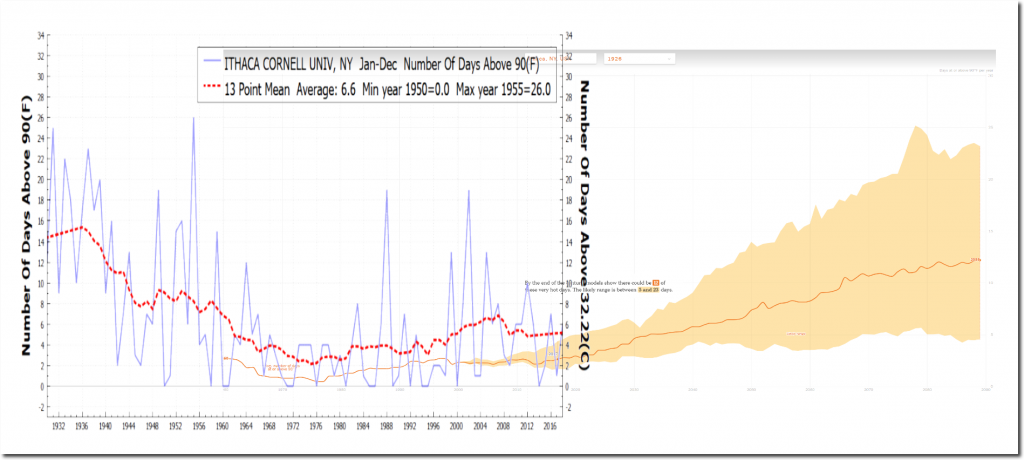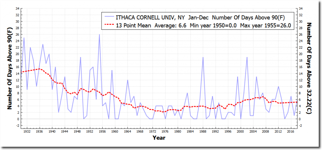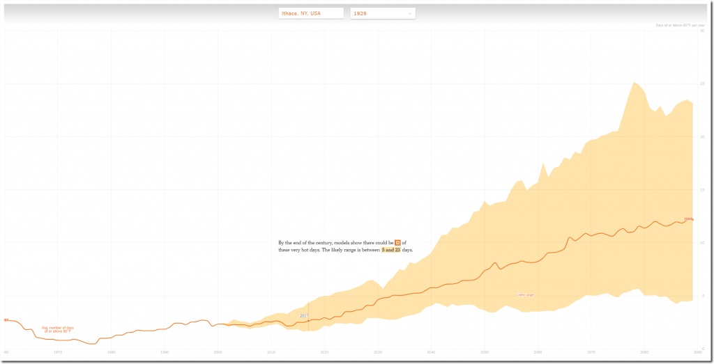 The New York Times claims that Ithaca, New York gets about three days per year over 90 degrees, when in fact they average almost double that.