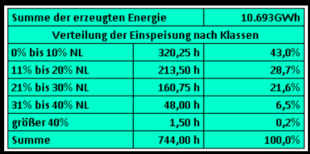 Ralf Schuster of Vernunftkraft did an analysis looking at the distribution of the power fed in according to class (Verteilung der Einspeisung nach Klassen) of the total wind energy that was generated: 10,693 gigawatt-hours in June.