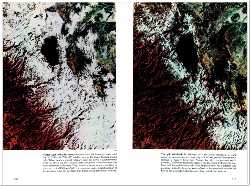 In February 1977 the Sierra snowpack—a scant quarter of normal—reached down only to 6,500 feet, setting the stage for a summer of massive forest fires. Already low after the previous year’s drought, California’s reservoirs began to go dry, idling hydroelectric turbines and forcing farmers to drill more irrigation wells. But California was not alone. Virtually the entire West suffered as low snowpack reduced the flow of the Colorado, Columbia, and other critical river systems.