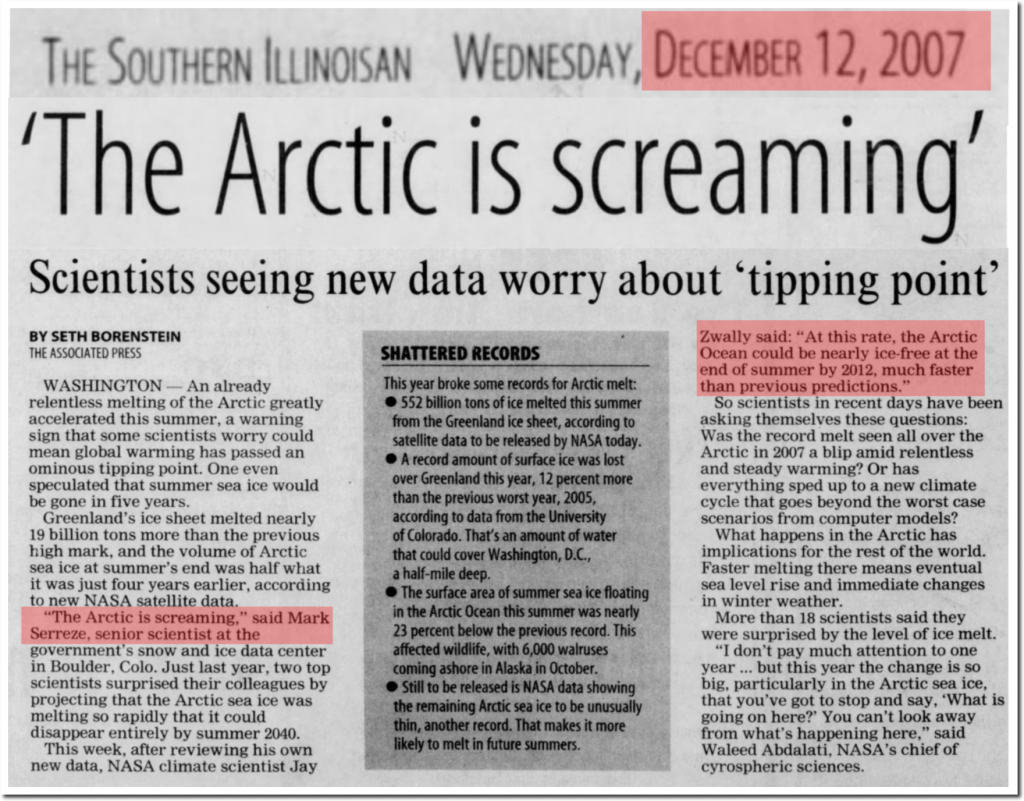 Climate experts say the Arctic is screaming, and could be ice-free by 2012.