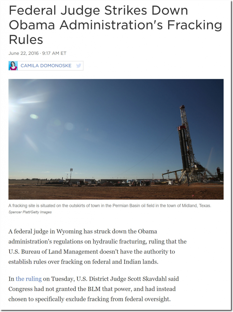 Fracking Ruling: Federal Judge Strikes Down Obama Administration Regulations : The Two-Way : NPR
