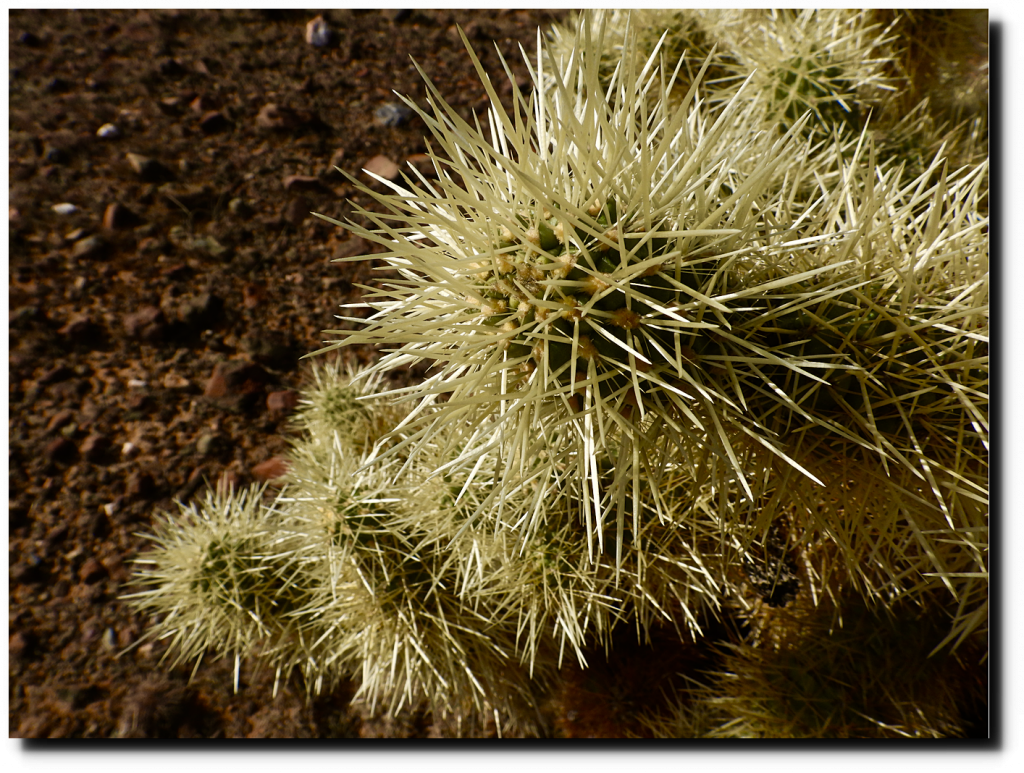 Teddy Bear Cholla cactus spines fold over after they get under your skin, so pulling them out is like pulling fish hooks out. One day in 1976 I went to the emergency room in Superior, Arizona with hundreds of them in my wrist. The doctor had just moved out from Pennsylvania the day before, and had never seen a Cholla. He was pretty good with a pair of pliers however.