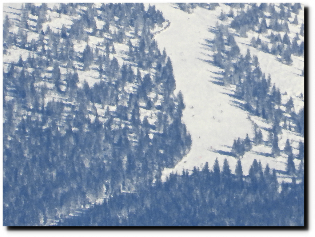 I took these pictures of skiers at the Santa Fe Ski Basin from 22 miles away, on the other side of the Rio Grande. The air was very clear today.