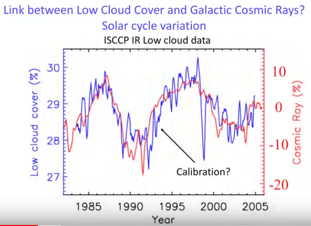 In his presentation (see video) he explains the mechanism of how the cosmic rays seed low level clouds, which act to cool the climate. In periods of intense solar activity, the sun’s magnetic field engulfs and shields the Earth’s atmosphere from the cloud-seeding cosmic rays, thus less low level clouds are formed and the Earth warms.