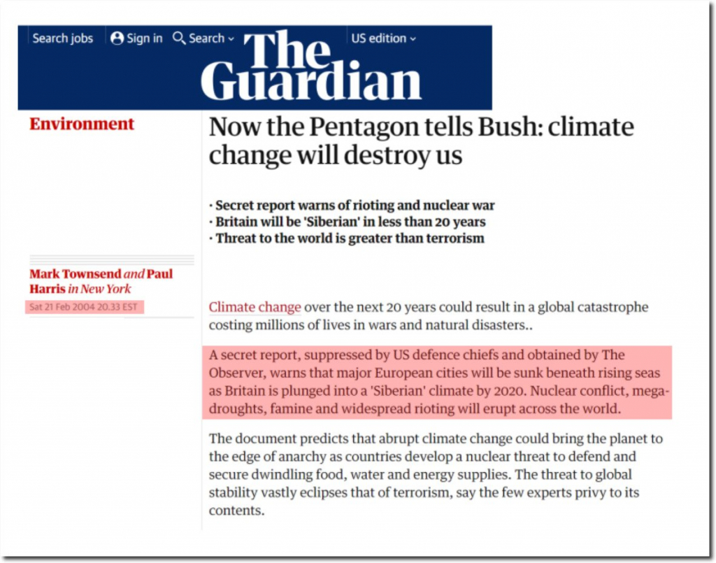 Pentagon tells Bush: climate change will destroy us | Environment | The Guardian