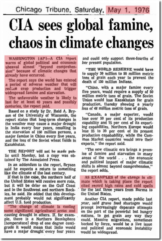 May 1, 1976 – CIA sees global famine, chaos in climate changes