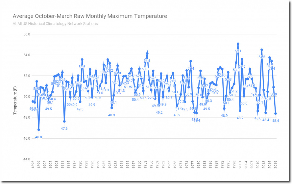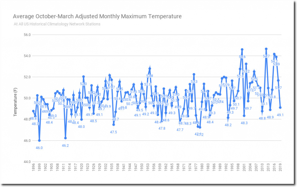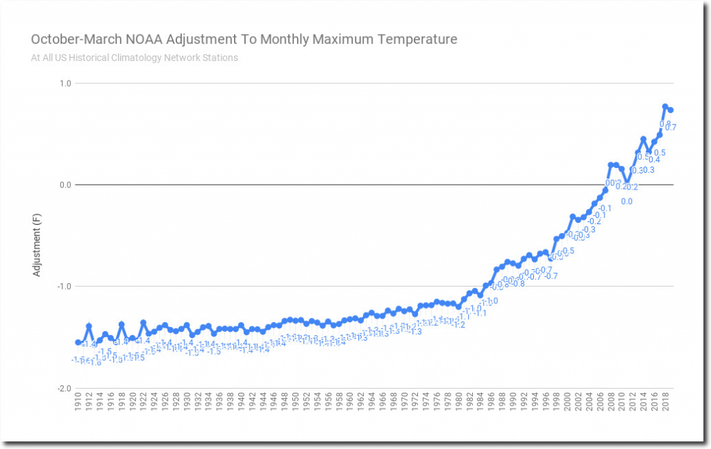 Bob made two major mistakes. First he used the wrong six month period, Sep-Feb instead of Oct-Mar. But his big mistake is using the words “NOAA recorded.” He should have said “NOAA reported.” NOAA massively alters their recorded data before they report it.