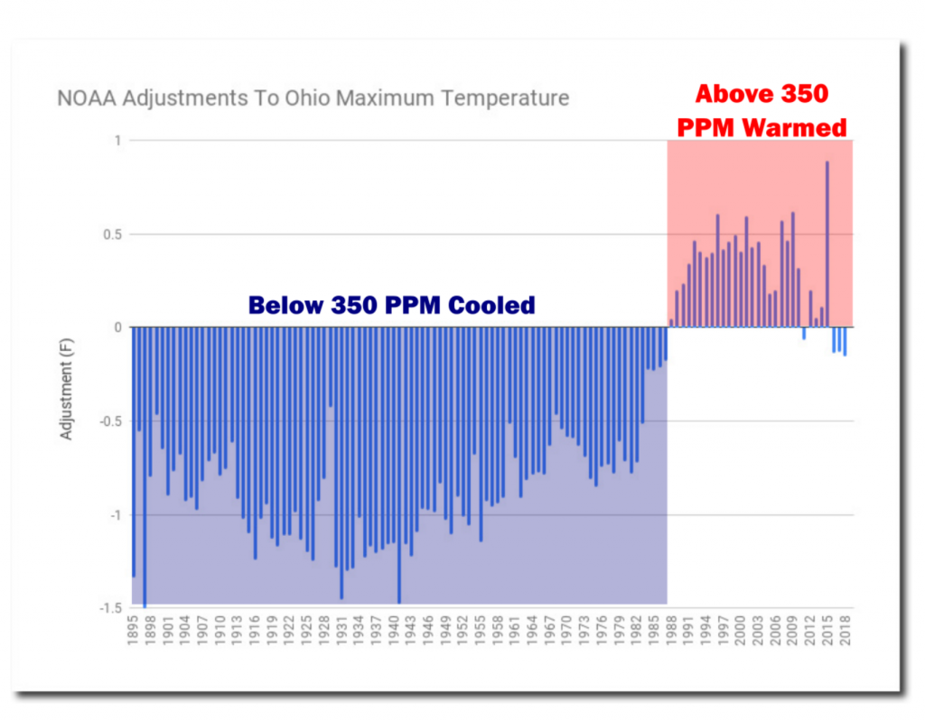 NOAA creates a fake warming trend in Ohio by altering the data to match their CO2 warming theory. This is the ultimate junk science and fraudulent behavior scientists can engage in.