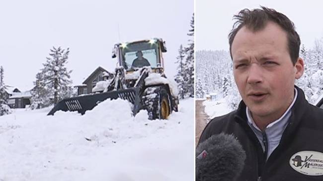 – It is 35 centimeters of snow here on the mountain, says machine operator William Stålknapp who cleared snow on the roads next to Högfjällshotellet in Sälenfjällen.
