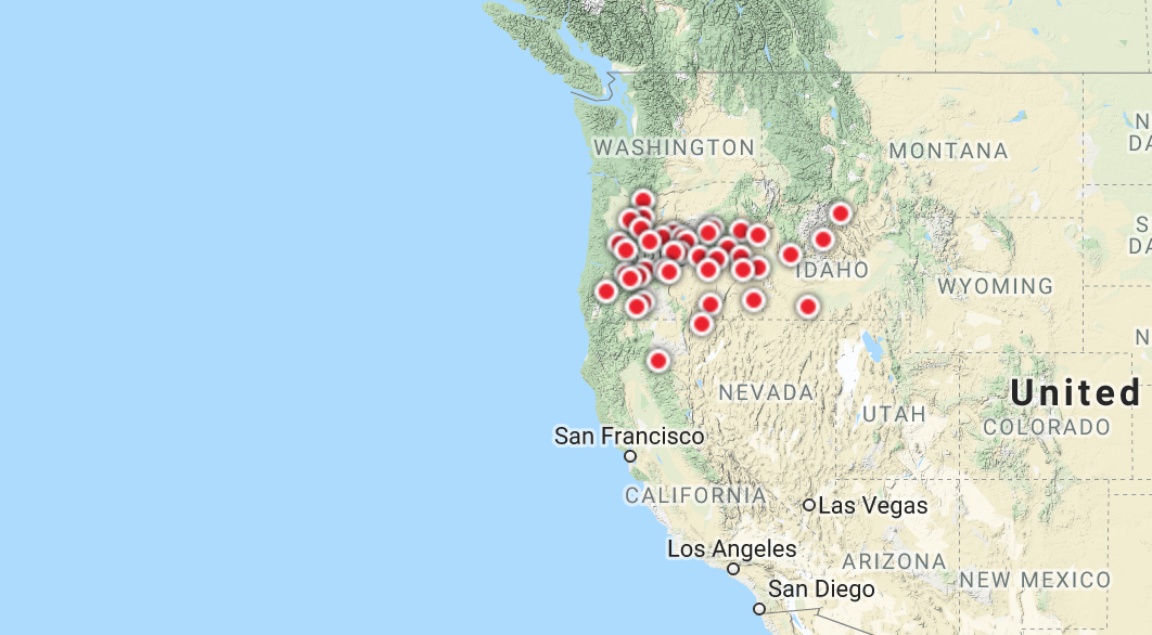 But the temperatures were even more unusual in Oregon and vicinity.  This map, courtesy of NOAA, shows locations of record low maximum temperatures on Friday for that date.  LOTS of them over southern Oregon and Idaho.