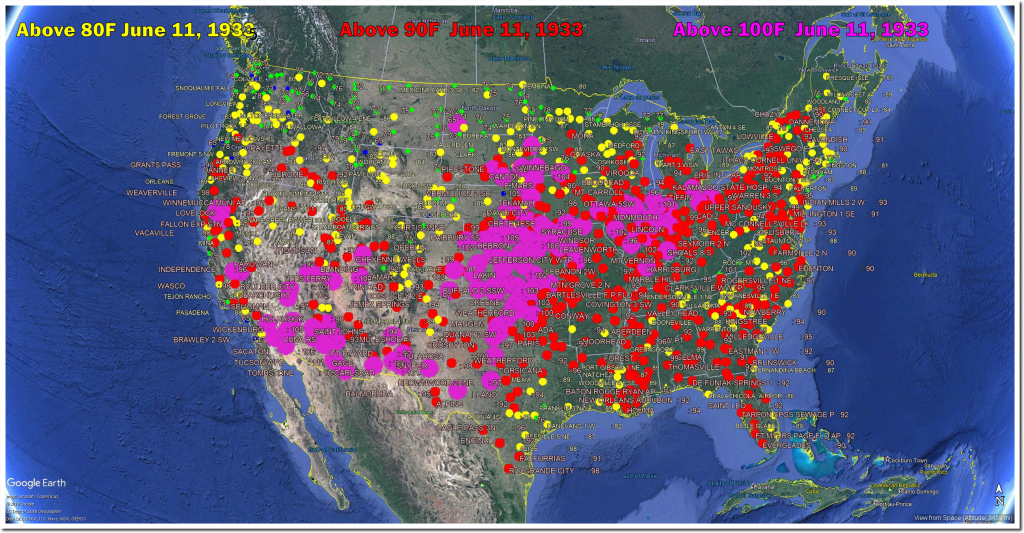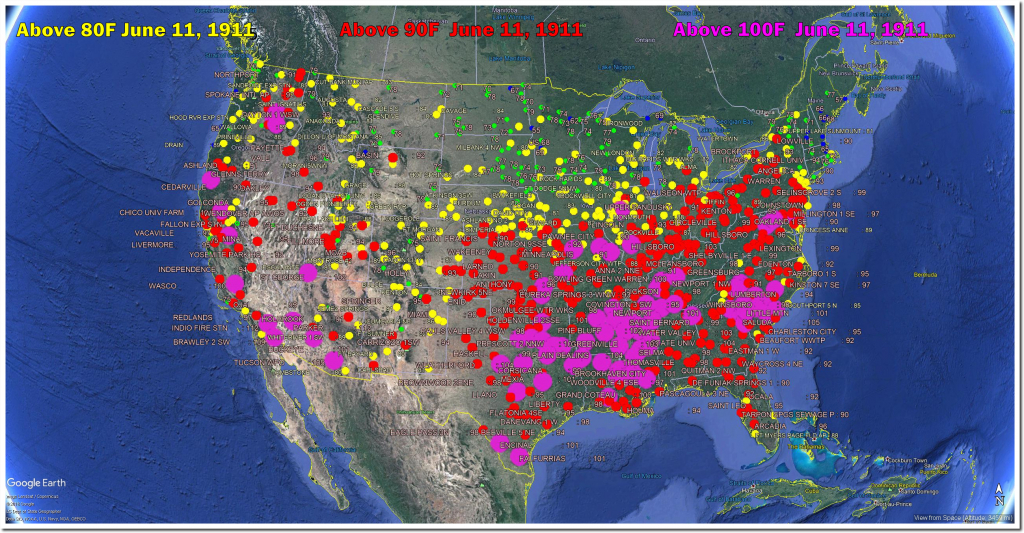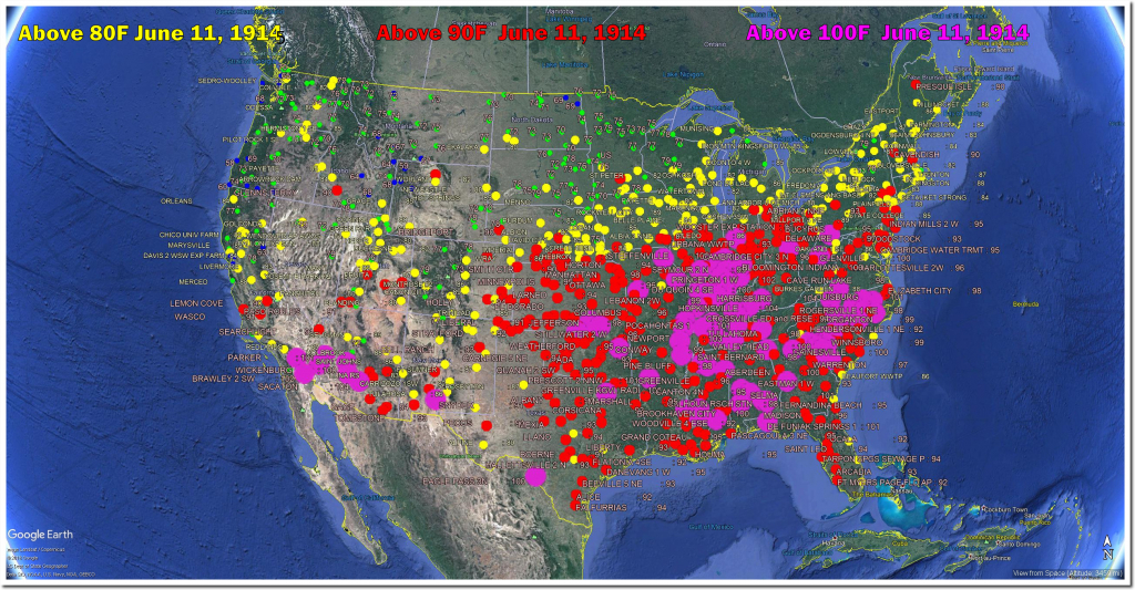 We now associate 100 degree weather with the desert southwest, but it used to be quite common across much of the country.