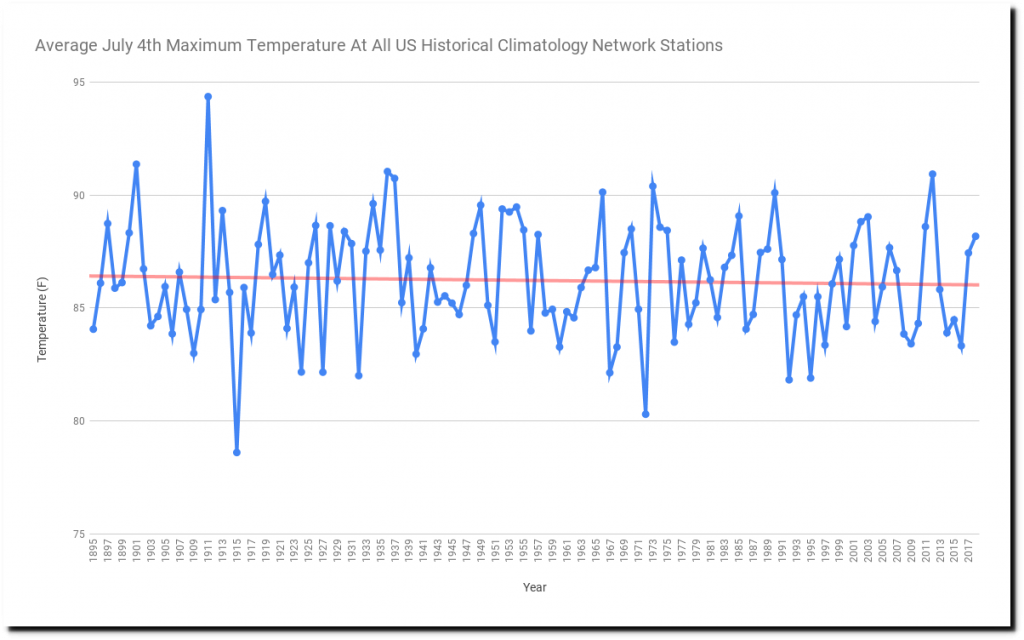 July 4th maximum temperatures have declined in the US since the 19th century,