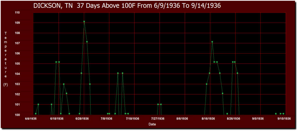 From June 9 to September 14, 1936, Tennessee had 37 days over 100F, topping out at 109F on June 28. I wonder why Al Gore doesn’t remember that?