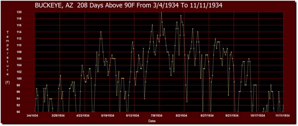 Arizona’s record heatwave occurred 85 years ago, when Buckeye had 208 days over 90 degrees from March 4th to November 11