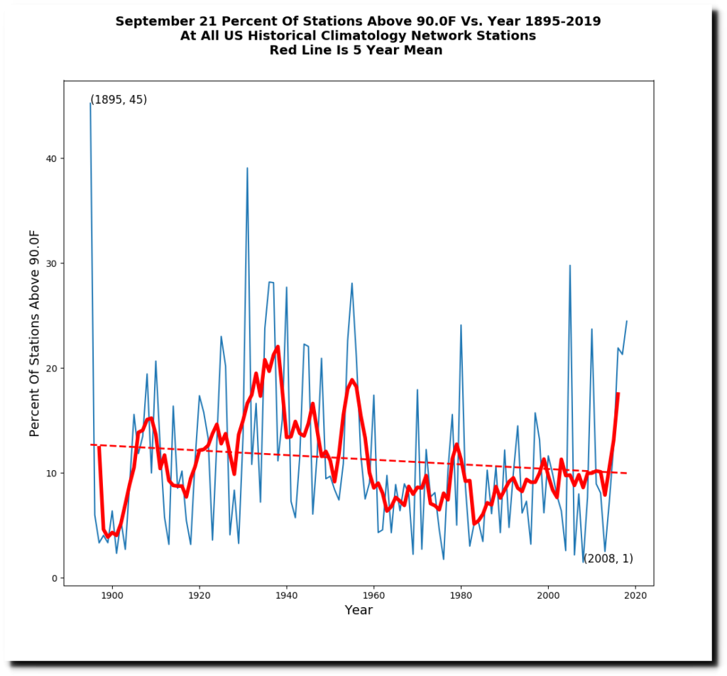 The end of summer used to frequently be hot in the US prior to 1950.