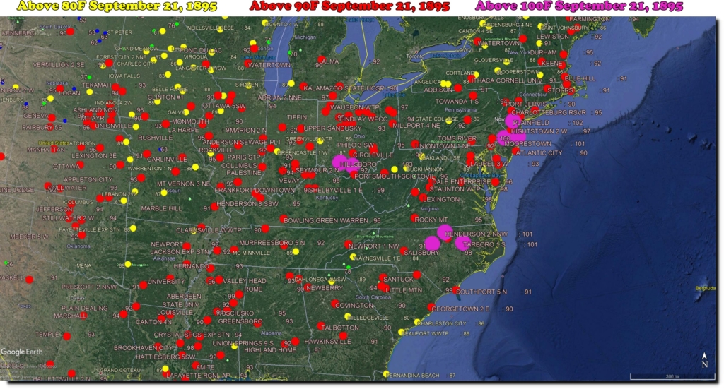 On this date in 1895, 45 percent of the country was over 90 degrees, and it was 103F in Ohio and 102F in New Jersey.