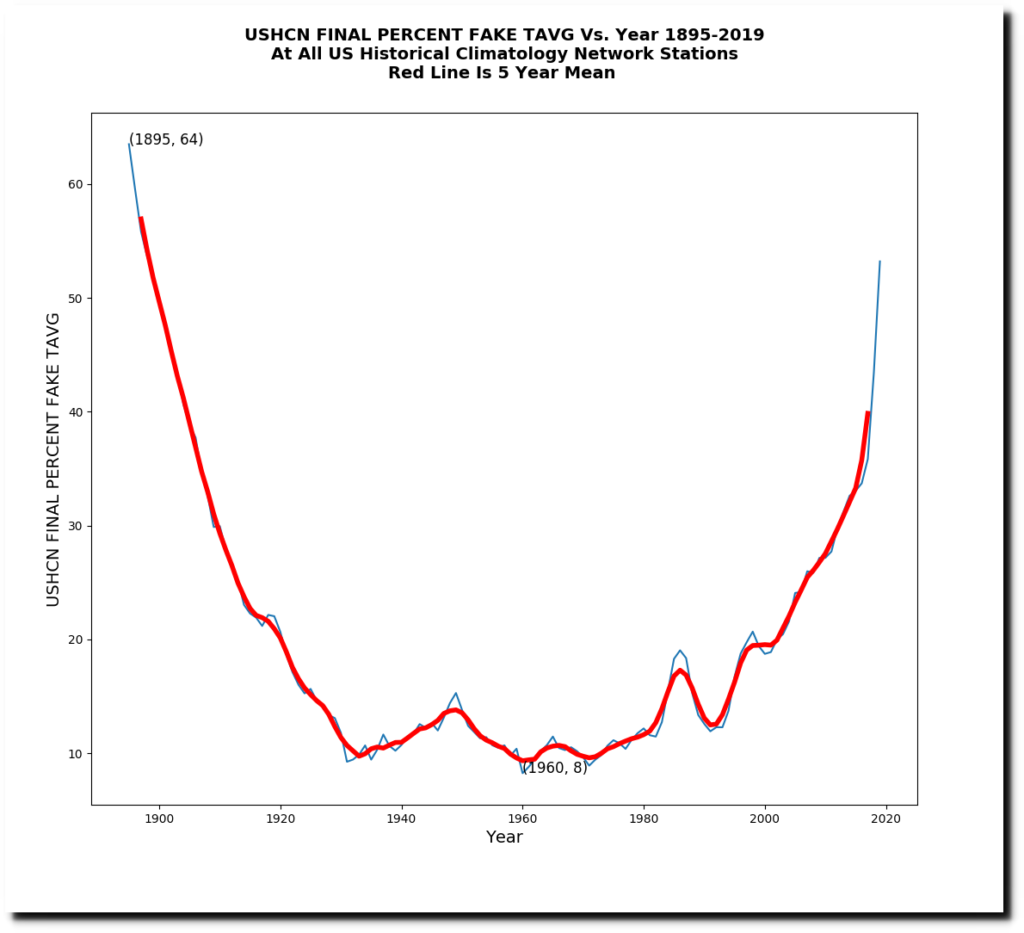 More than 50% of the NOAA adjusted data is now fabricated. It is all a complete farce.