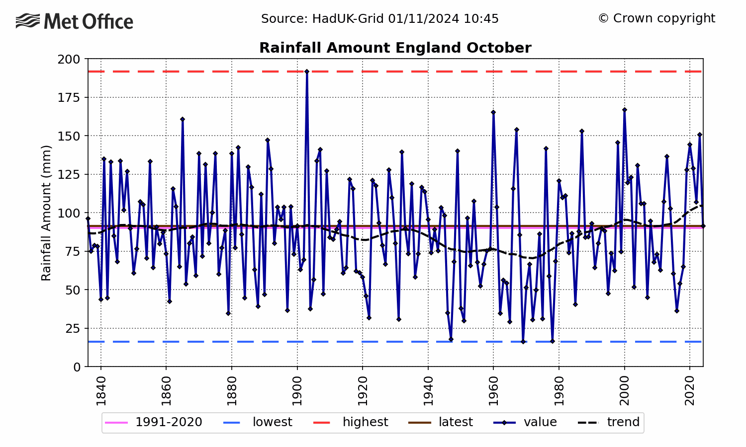If he had not noticed, we are currently in autumn, and rainfall in England is not increasing in autumn, or for that matter in winter either: