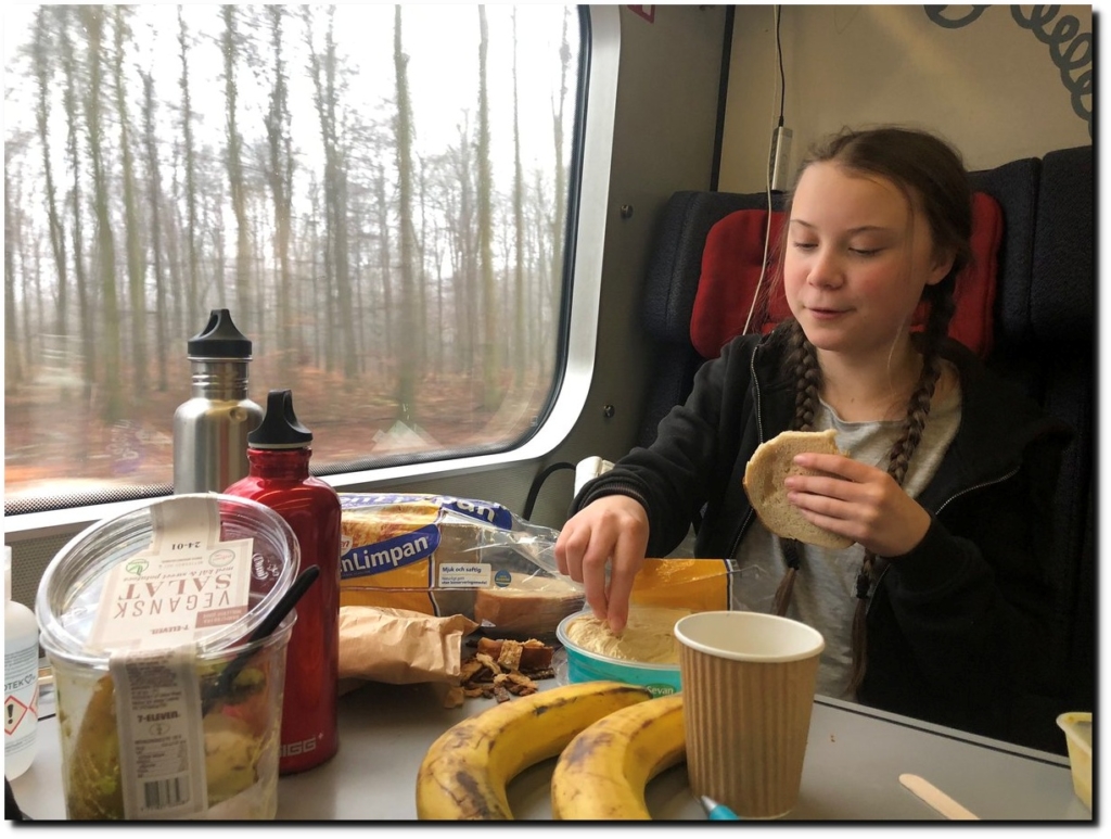 Greta Thunberg can see CO2, which must make it difficult to also see what she is eating on the train.