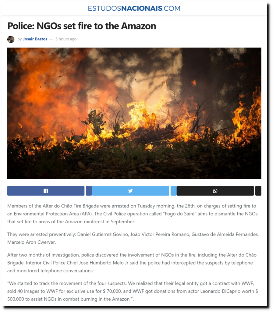 Leonardo DiCaprio and WWF sent large amounts of money to organizations which earned their living by starting fires and then selling pictures of the fires.